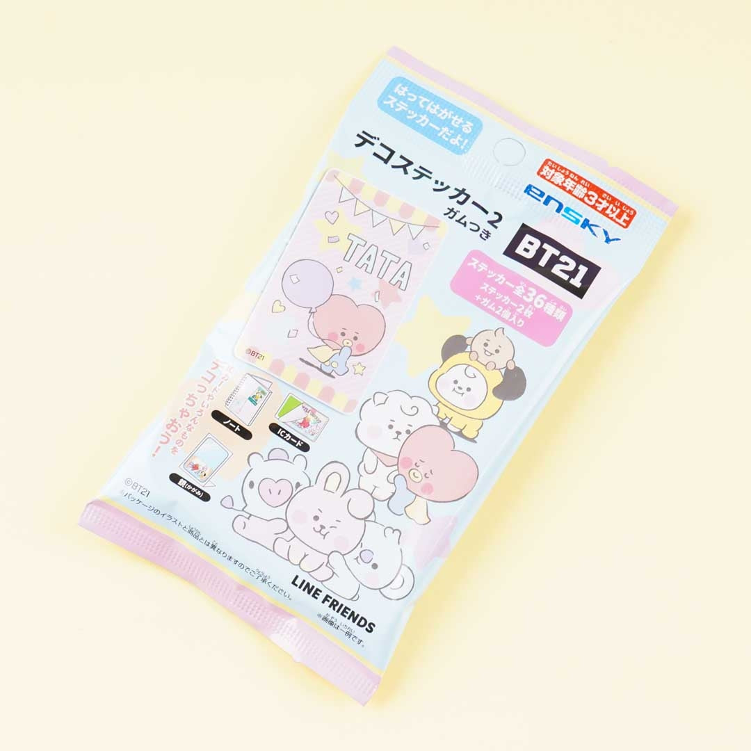 - A pack containing 2 BT21 character stickers and gum