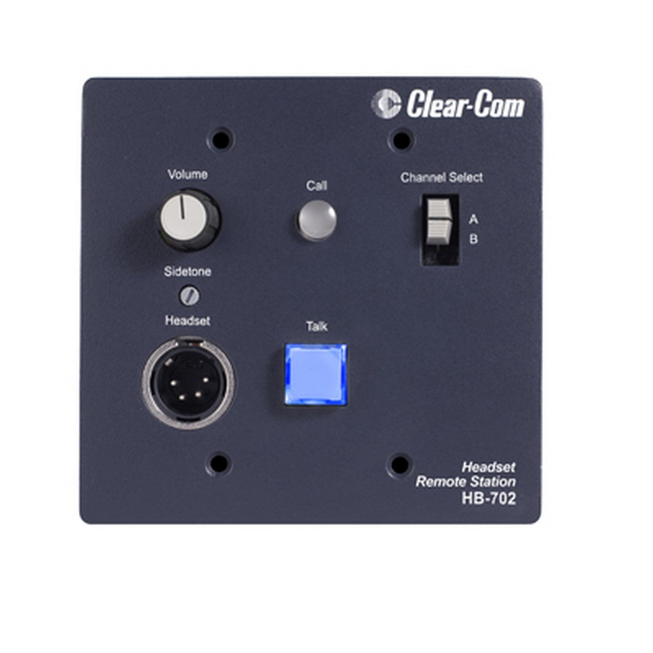 HB-702 is a selectable two-channel wall or console-mounted headset station. Microprocessor-controlled logic and switching, with momentary/latching talk button. Visual call signaling.