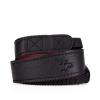 - Black leather strap with a natural leather underside, complemented by natural stitching.