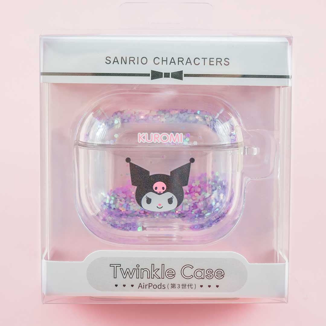 Protect your AirPods 3rd Generation charging case by using this super cute clear cover! It will keep your case from having dents or scratches and has twinkling sequins inside! This protective case has a kawaii Kuromi print and a strap hole.