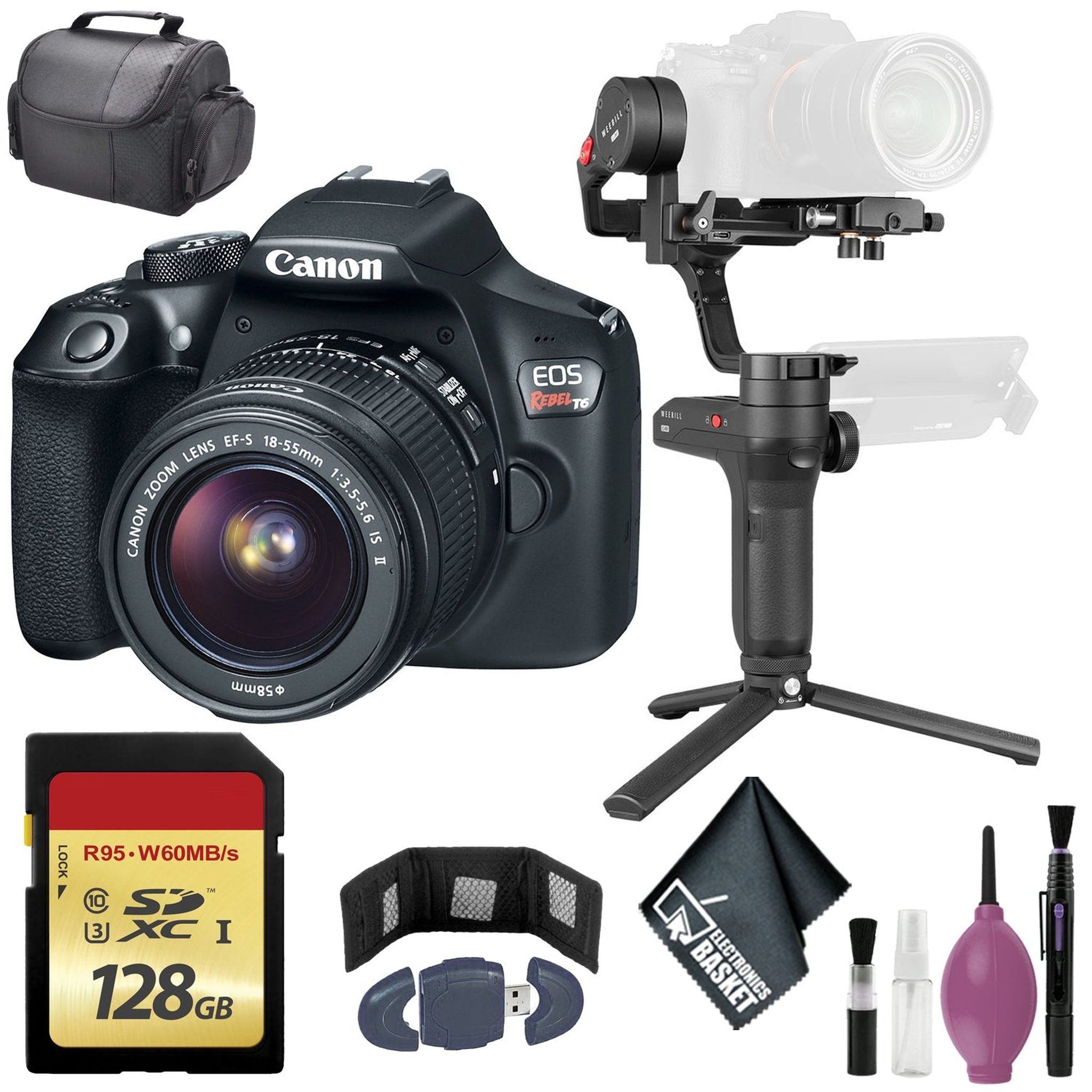 Zhiyun-Tech WEEBILL LAB Handheld Stabilizer – CanonEOS Rebel T6 DSLR Camera with 18-55IS II Lens – 128GB Case Affordable Cheap Pice